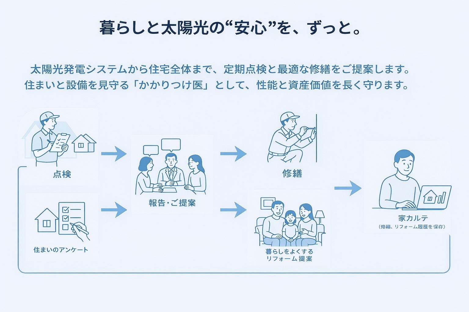 太陽光パネルの効率低下を感じている方、設置から数年以上経過している方は、ぜひ一度ご相談ください。